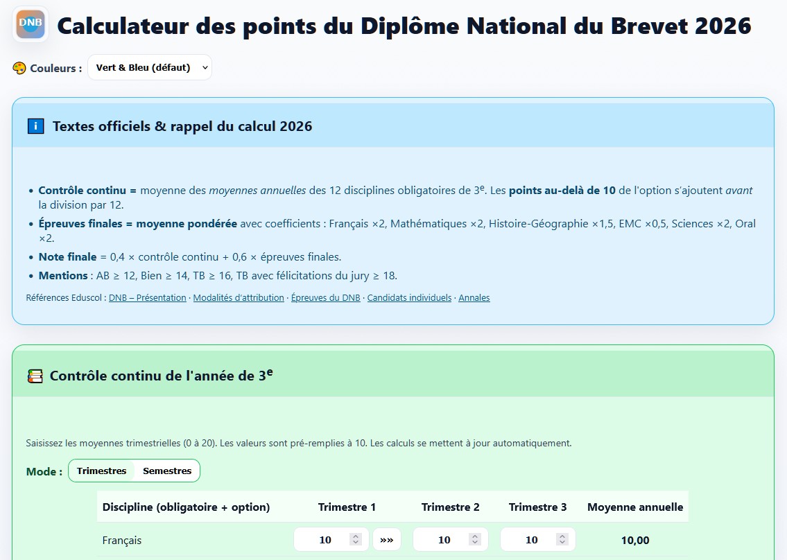 Calculateur des points du Diplôme National du Brevet 2026